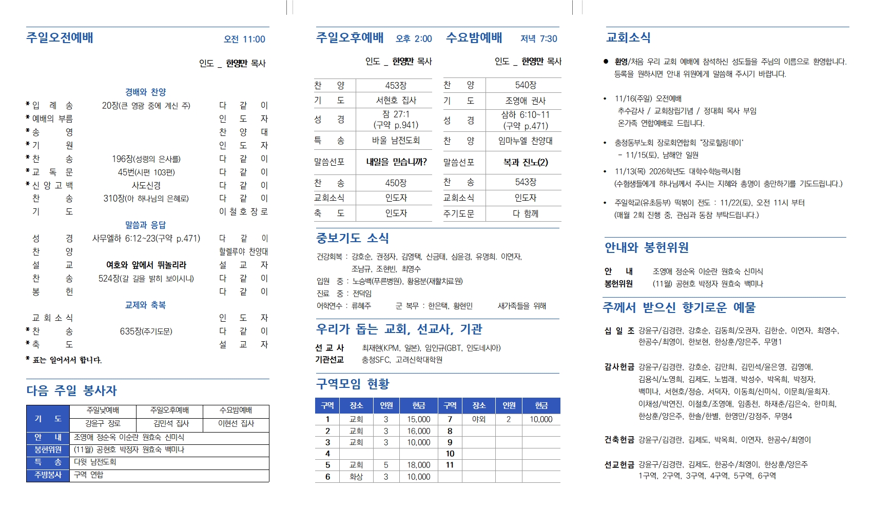 주보 Menu 교회소식 주보 기도제목 기도문 2025/11/09 주보 작성자 Hyangrin_2 작성일 2025-11-08 21:18 조회 99 인쇄 전체 0 추천순 작성순 최신순 댓글을 남기려면 로그인하세요. « 2025/11/02 주보 2025/11/16 주보 » 목록보기 Powered by KBoard